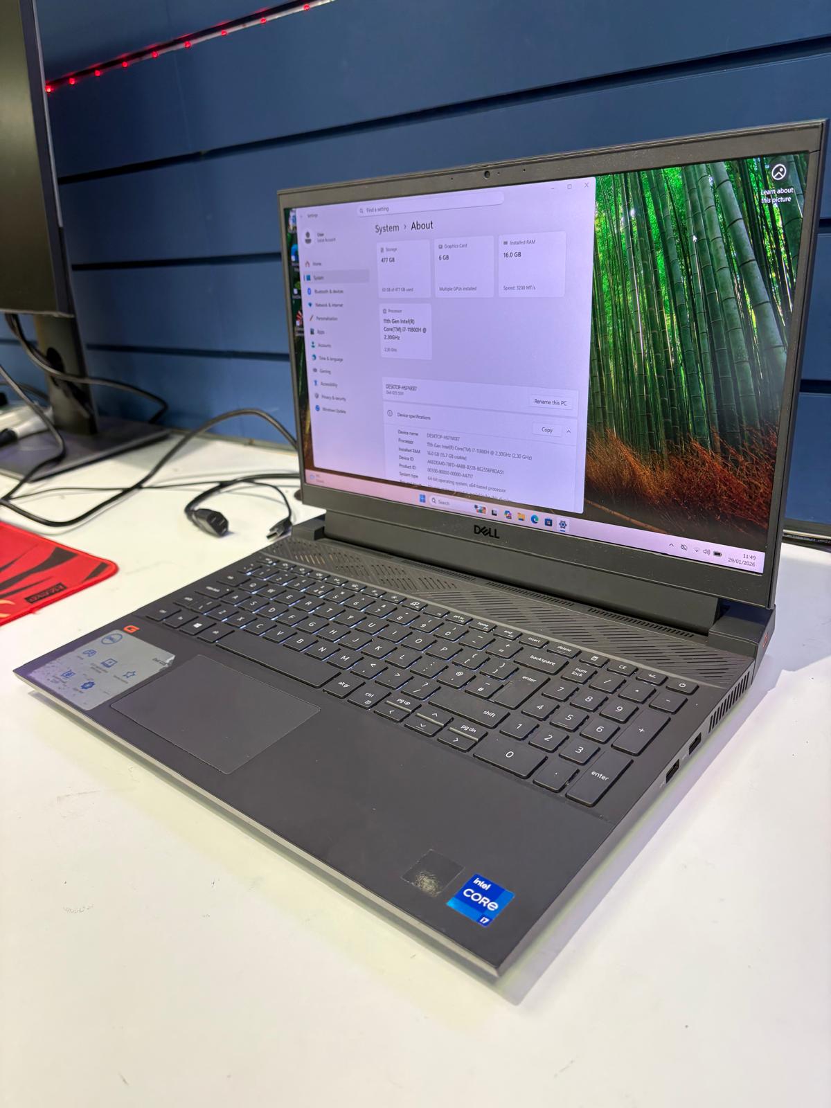 Dell G15 5511 Gaming Laptop – Core i7-11800H, 16GB RAM, 512GB SSD, RTX 3060, 15.6" FHD 144Hz. Powerful gaming performance with smooth high-FPS gameplay.