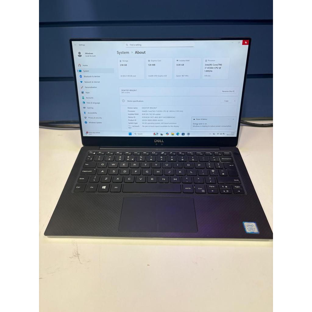 Experience premium mobility with the Dell XPS 13 9370, one of the most compact and beautifully engineered ultrabooks on the market. Powered by the Intel Core i7-8550U (8th Gen), this laptop delivers fast, efficient performance for multitasking, productivity software, web browsing, and everyday use. With 8GB of RAM, the system remains smooth even when running multiple applications at once.
